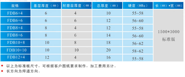 我公司耐磨板的耐磨層以高鉻為主,溶蝕還有錳、鉬、鈮、釩等成分,同時還具有很好的抗氧化功能,在600℃以下完全可以正常使用。
